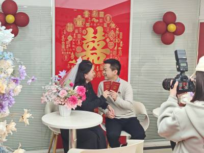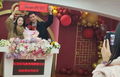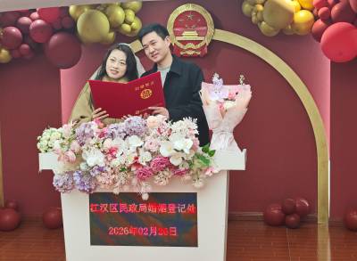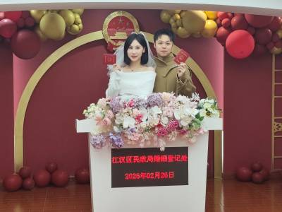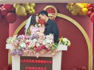 2月26日是马年正月初十,是大吉大利美好的日子。在武汉市江汉区民政局婚姻登记处,呈现出新人们喜领结婚证浪漫氛围与新春马年元宵佳节的喜庆年味巧妙融合,处处洋溢着温馨、浪漫、祥和的气息。江汉区民政局婚姻登记处工作人员,热情周到服务好前来办理婚姻登记的每对新人,让他们高兴而来,满意而归。