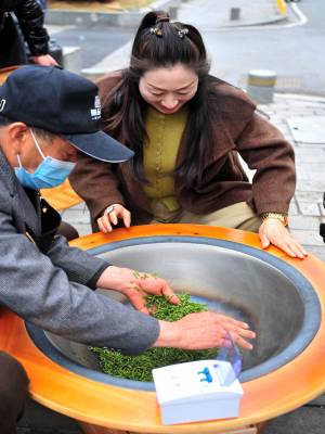 2026年2月27日,宜昌市夷陵区以“峡江春早・宜路领鲜”为主题的2026春茶季·炒制第一锅春茶活动在萧品记萧品茶铺启幕,当地制茶师傅现场以娴熟稳健的手法,完成翻抖、揉捻等核心工序,展示三峡流域传承百年的传统手工制茶技艺,吸引不少市民围观,感知第一锅春茶的“鲜”味从何而来。活动以开春限定头采茶芽为核心载体,以三峡传统制茶技艺传承为内核,通过实景化制茶展示、沉浸式消费体验、全渠道惠民预售三大板块,以活态传承守护本土制茶文脉,为春茶消费市场注入全新活力。(视界网 张国荣 摄)