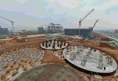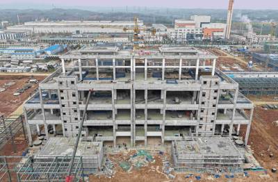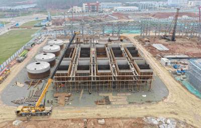 2026年2月27日,工人在兴发保谷磷化工产业园的保康楚烽化工有限责任公司化搬迁技改项目现场忙碌。