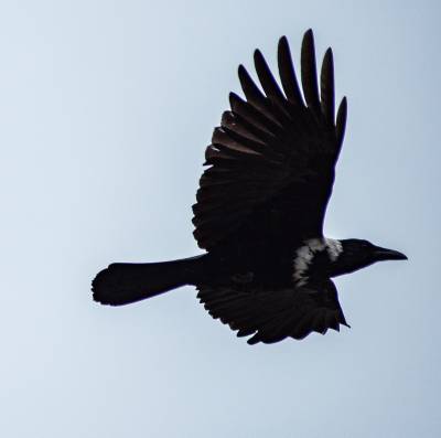 据了解,白颈鸦通体以黑色为主,仅颈后、上背、颈侧及前胸环绕一圈白色羽毛,形成鲜明颈圈,辨识度极高。该鸟类属雀形目鸦科,体长约48厘米,多栖息于平原、河滩、村镇周边,常单独或成对活动,极少集群,主要以植物种子、昆虫等为食。