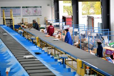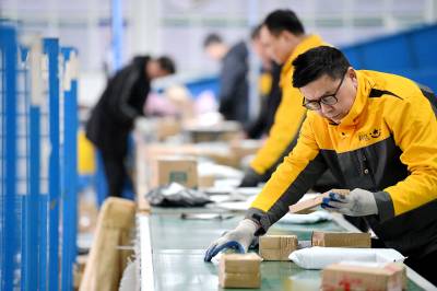 2026年2月28日,湖北省襄阳市保康县寄递物流共配中心,工作人员在智能快递分拣流水线上作业。 春节过后,快递物流迎来高峰。湖北省襄阳市保康县快递物流企业高效运行智能分拣设备,依托高速图像识别与自动控制技术,通过增派人手、投放无人驾驶配送车,提升快递揽收与配送效率,高效处理快递,确保节日物资快速流转、安全送达。 近年来,保康县全面畅通县乡村三级物流体系,打通快递进村、农产品进城的“双循环”,目前建制村快递配送服务覆盖率达100%。