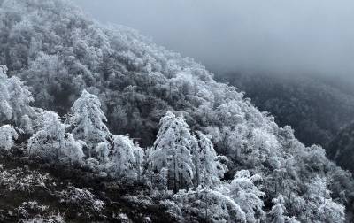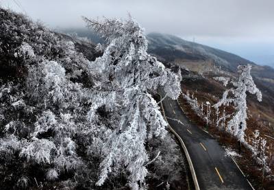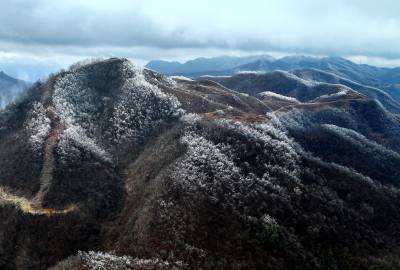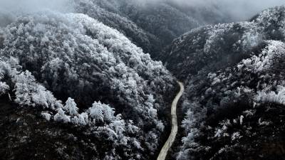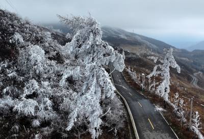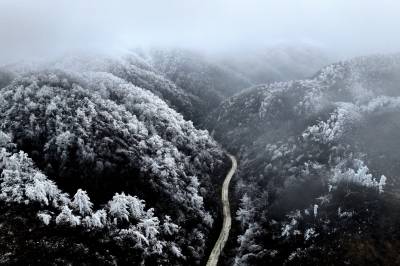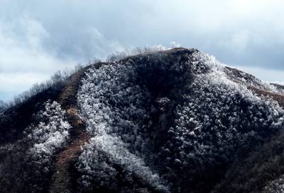 受连日低温小雨影响,这座海拔千米的山峰迎来了今春最壮观的雾凇景观。漫山遍野的玉树琼枝,在缥缈的云雾中若隐若现,仿佛一幅流动的水墨画,为当地百姓带来了丰收的祥瑞之兆。