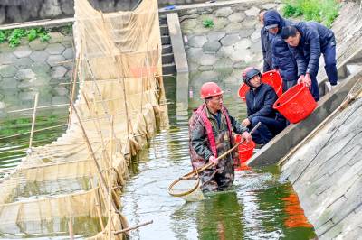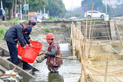 浠水:捕捞鱼苗供市场