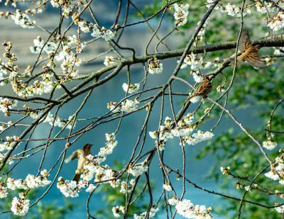 竹山:圣水湖畔樱花盛开 雀鸟欢舞