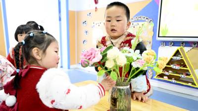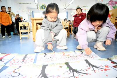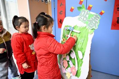 3月4日是湖北省十堰市郧阳区中小学开学的日子。在郧阳滨江新区幼儿园,老师和孩子们开展以“小马踏新程 萌娃迎春神”为主题的寻春、插春、贴春、点春、惜春、画春、戴春、拓春等丰富多彩的趣味活动,喜迎新春开学季。视界网王涛摄