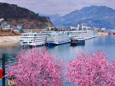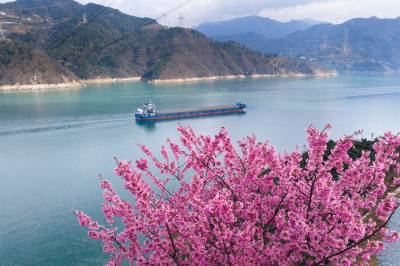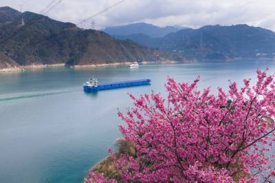 进入三月,气温回升,在湖北省宜昌市,三峡库区和三峡坝区春花烂漫惹人醉,美景如画迎客来。