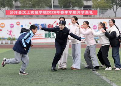 2026年3月5日,湖北省沙洋县汉上实验学校“阳光大课间”上,沙洋县公安局女警们将法律知识与体育运动巧妙结合,为孩子们带来一堂生动欢乐的普法课。 在第116个“三八”国际妇女节前夕,当地公安、教育等部门联合组建“巾帼普法宣讲团”开展普法宣传“护苗”行动。宣讲团依托校园大课间的轻松氛围,把禁毒、反诈、防拐等实用法律知识,融入情景模拟、知识问答与体育互动中,让孩子们在“玩中学、学中悟”,切实提升自我保护意识与防范能力。 通讯员 赵平 姚薇 摄