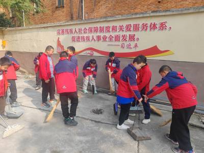 3月5日下午,学校组织五六年级30多名学生组成“爱心团”,带着扫帚、抹布等工具,排着整齐的队伍,步行来到附近的养老院。