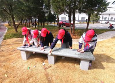 下午3时许,纪念馆停车场及周边公共区域活跃着一群“红领巾”和“红马甲”。孩子们在党员教师的带领下,分成若干小队,迅速投入劳动。有的手持扫帚,细心清扫停车场角落的落叶与烟头;有的拿着抹布,踮起脚尖反复擦拭路边的公共座椅、宣传栏和纪念馆标识牌。