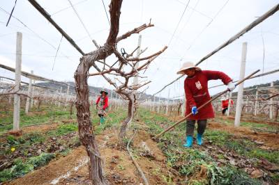 房县:果园春管忙 2026年3月8日,十堰市房县化龙堰镇高桥村葡萄产业园,当地农民在为葡萄树施肥、覆土。人勤春来早,果园农事忙。随着气温不断回升,果树进入春管关键期。连日来,房县抢抓农时,积极对果树进行修枝整形、除草施肥、浇水灌溉等管护工作,为今年的丰产丰收打好基础。 视界网 张启龙 摄 . 湖北省十堰市房县水利和湖泊局 张启龙 邮编:442100 电话:0719-3233769 手机:13997816718