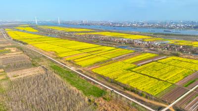 阳春三月,春风执笔,油菜泼金,天兴洲上成片的油菜花怒放。天兴洲,是长江武汉段的一个江心洲,具有得天独厚的原生态江岛风情景观资源。近年来,武汉市洪山区天兴乡积极探索土地流转新模式,激活沉睡的土地资源,在天兴洲大规模种植油菜。春天,成片怒放的油菜花如金毯铺展,似云绵流霞,与天兴洲长江大桥、青山长江大桥及构成一道美丽的风景。
