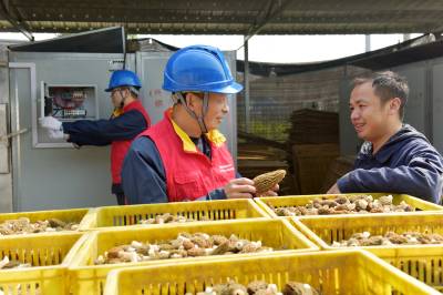 3月10日,在老河口市仙人渡镇白鹤岗村羊肚菌种植基地,国网老河口市供电公司员工走进电烘干车间对用电线路和设备进行查看,保障羊肚菌烘干加工可靠用电。该基地占地190亩,年产值600万元,主要销往上海、广东、福建等沿海地区。(郭峰)