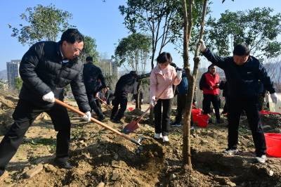 3月11日,竹山县组织机关干部600余人在南山植物园栽植桂花树、白玉兰、梅花树、红豆杉等树苗1800株,为“茂林修竹·山清水秀”的竹山县城增绿添彩。