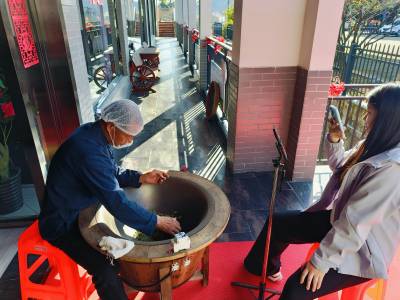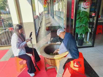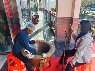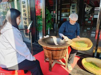 据介绍,当天上午采摘的开春首批萌发的茶芽,芽体饱满,内含物质丰富,是春茶中品质最优的上乘原料。在高温铁锅中,制茶技师以娴熟稳健的手法,完成翻抖、揉捻等核心工序,嫩绿饱满的茶芽在掌间流转成型。