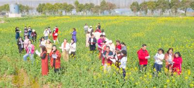 三月春风暖,花海诵诗声。3月12日,嘉鱼县新街龟山油菜花海迎来一场诗意盎然的文化盛宴——嘉鱼县朗诵协会开课暨春日主题诵读活动如期举行。53位朗诵协会会员齐聚金色花田,以声传情、以文润心,在春光与诗韵中,共赴一场春天的约会。
