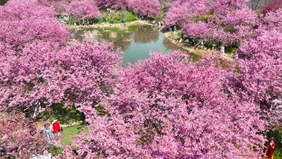 据悉,该园樱花种植面积达700亩,园内共有46个品种、2万余株樱花,包含中国红、红粉佳人等樱花珍品,涵盖早、中、晚樱,最佳赏樱期持续至3月底。