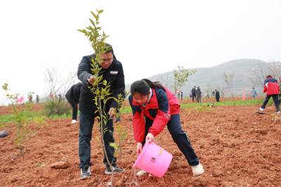 活动现场,干警们分工协作、干劲十足,挥锹铲土、扶苗填坑、踩实浇水,一道道工序规范有序。新栽柑橘树苗迎风挺立,山地披上新装,初春的山坡更加生机盎然。
