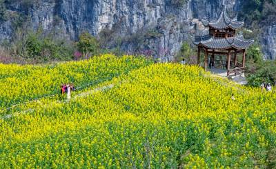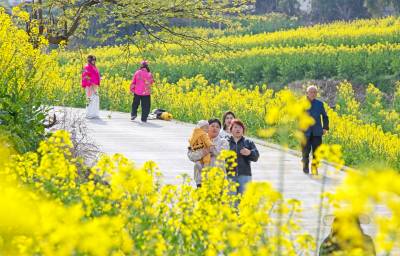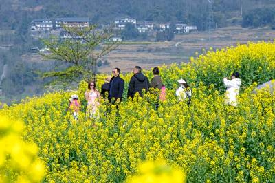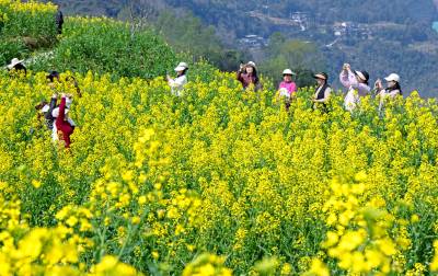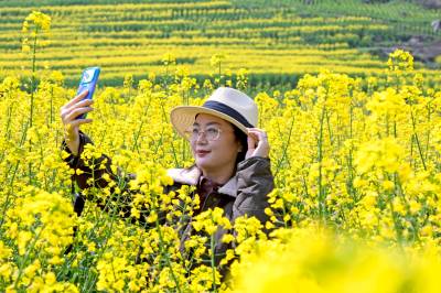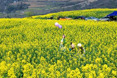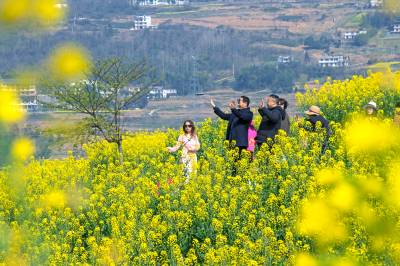 3月13日,恩施市屯堡乡田凤坪村的油菜花竞相绽放,美不胜收,吸引众多市民游客前来踏青、游玩、赏花,乐享春日田园春光。