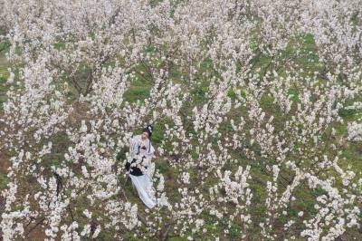 千亩樱花绽放 英山河东樱花园游客如潮