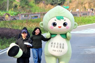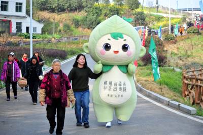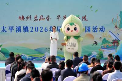 2026年3月12日,宜昌市夷陵区太平溪镇三峡茶谷·落佛茶旅新村茶主题公园内的太平溪早市茶开园现场,以嫩绿茶芽为原型设计的太平溪早市茶吉祥物“茶小溪”亮相,这个灵动可爱的文化IP瞬间俘获众人目光——翠绿的“身姿”饱含生态气息,俏皮的神态尽显茶乡活力,既象征着太平溪早市茶的鲜嫩特质,更承载着茶乡人民对美好生活的向往,成为太平溪早市茶品牌走向更广市场的全新文化名片。(视界网 张国荣 摄)