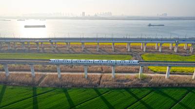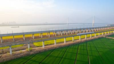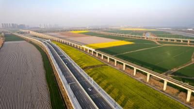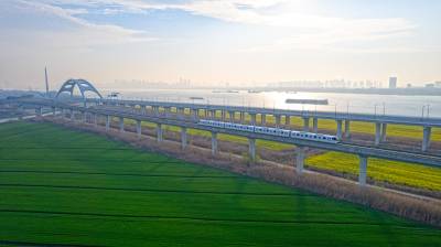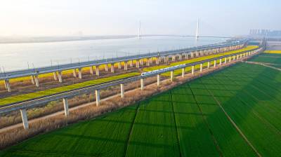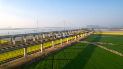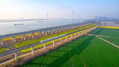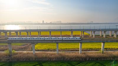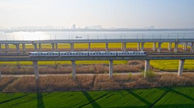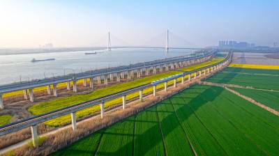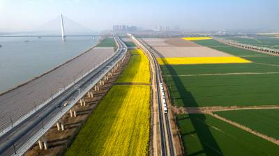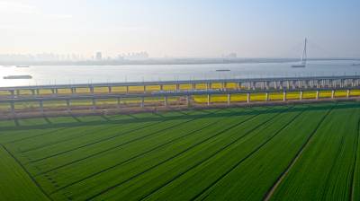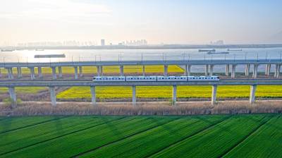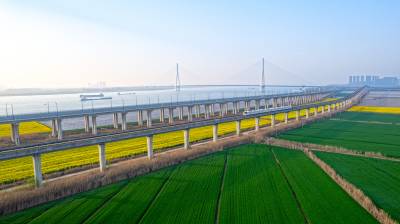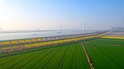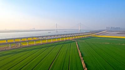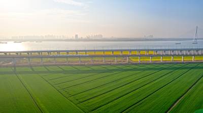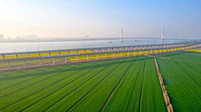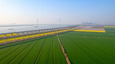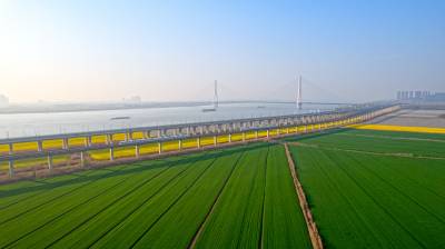2026年3月14日,湖北省武汉经济技术开发区内,绿油油的麦田与金黄的油菜花交织成片,长江碧波、高架桥梁与地铁轨道错落其间,相映成趣,共同勾勒出一幅生机盎然的春日美丽画卷。
