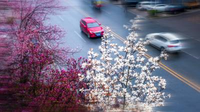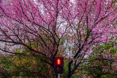 红安杏花大道:春把整街酿成了粉紫的诗