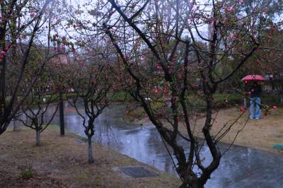 2026年3月14日,春雨如丝,润物无声。绵绵春雨中,湖北省英山县城南毕昇广场,垂丝海棠竞相绽放,在细雨的滋养下愈发娇艳,吸引不少市民前来赏景打卡,感受春日限定的浪漫与生机。漫步雨中,园内的海棠花昂首绽放,一树树海棠有的含苞待放,有的繁花似锦,花瓣洁净透亮,层层叠叠,剔透的水珠依偎在绯红的花瓣上更觉清丽可爱。