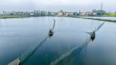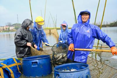 浠水:春捕鱼苗忙 产业兴水乡