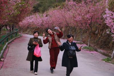 3月13日,英山县河东樱花园开园,开园以来,漫山遍野的粉色花海如云似霞,不仅拉开了英山春日旅游的序幕,更吸引了大批游客前来踏青赏花。