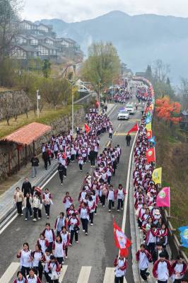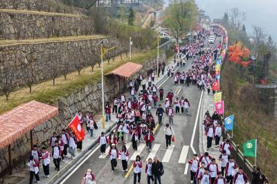 2026年3月20日,在湖北省恩施土家族苗族自治州巴东县巫峡口景区,学生正徒步登山。 近年来,巴东县立足生态优势与文旅资源,以“体育+”为强劲引擎,举办冬泳邀请赛、半程马拉松赛、高山滑雪锦标赛等品牌赛事,不断丰富赛事供给、完善健身设施,以赛事聚人气、以运动促消费,走出一条文体旅融合赋能高质量发展的特色路径。 视界网 焦国斌 摄
