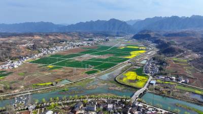 2026年3月20日,十堰市房县马栏河贯穿军店镇腹地,青山、绿水、农家、田野相映成趣,构成了一幅和美乡村新画卷。