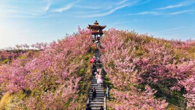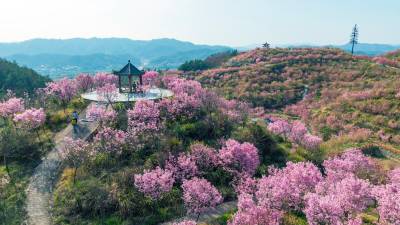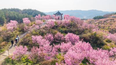 2026年3月21日,湖北省黄冈市英山县河东樱花园樱花盛放,漫山粉樱如云似霞,游客徜徉花海,共赴春日之约,烂漫樱花与澄澈蓝天相映成趣,勾勒出一幅生机盎然的春日图景。
