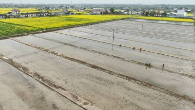 3月21日,枝江市五家畈农机专业合作社社员正在耕整秧田准备育秧。该市是湖北粮食种植大市,他们充分发挥合作社的引领示范作用,大力推广种植优质稻,确保水稻种植面积在20万亩以上。视界网刘卫东摄