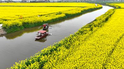 3月22日,天气晴好,武汉市新洲区涨渡湖街道的千亩油菜花海进入盛花期。走进油菜花田,仿佛踏入了一片金黄色的世界。游客徜徉花海中,或拍照打卡,或悠闲漫步,或乘船游览,沉浸式感受春日的生机与美好,一幅幅乡村和美画卷伴随着淡淡清香扑面而来。
