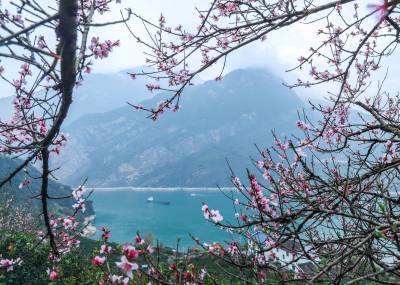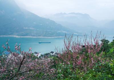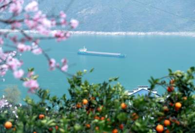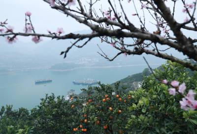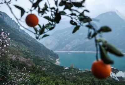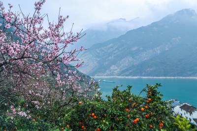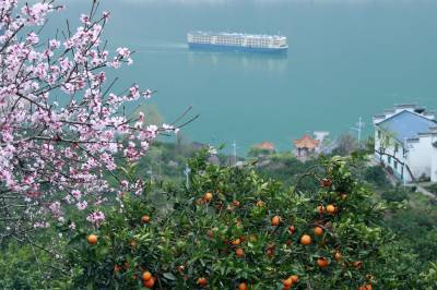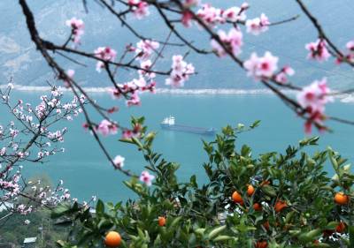 眼下,位于长江三峡西陵峡的湖北省宜昌市秭归县峡江两岸,春橙正红,春花盛放,花艳果丰交相辉映,美不胜收。