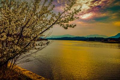 2026年3月25日,黄昏时分,白莲河畔的湖北省英山县方家咀乡四棵枫村枫花渡口,一树树梨花在夕阳中绽放, 花瓣洁白、花蕊嫩黄,微风拂过,花香清甜惹人醉,与当地的油菜花、樱花、村落、田园、河水交相辉映,形成一幅优美的春日图景,吸引大批周边市民与游客前来踏青赏花、拍照打卡,当地乡村旅游持续火热。