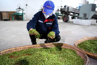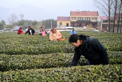 2026年3月26日,在湖北省襄阳市保康县马良镇溪峪村茶园,茶农在采摘“明前茶”。 清明临近,湖北省襄阳市保康县20万亩茶园陆续进入“明前茶”采摘期,全县各地茶农茶企抢抓季节采摘、加工“明前茶”,供应市场。