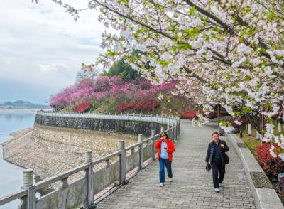 春风拂柳,繁花尽放。眼下,在位于三峡大坝坝上库首的屈原故里湖北省宜昌市秭归县,人们走出家门,踏青赏花,乐享春光。