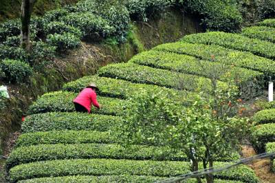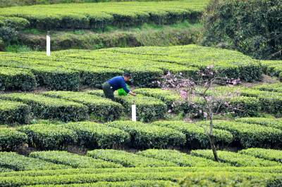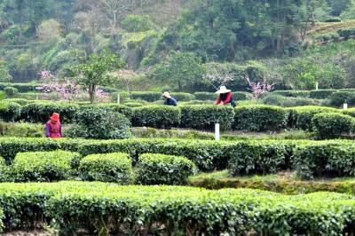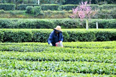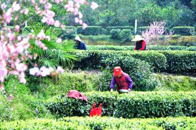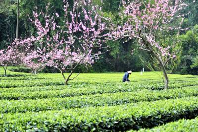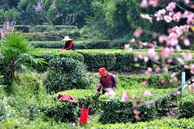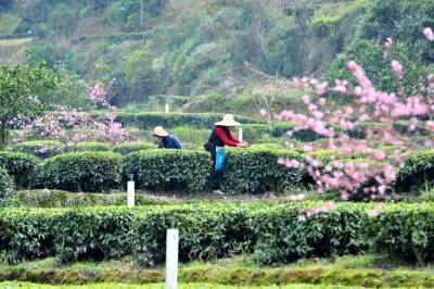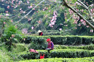 2026年3月26日,在宜昌市夷陵区太平溪镇一处春花相伴的生态茶园里,桃树花开满枝,茶芽翠绿饱满,桃花春茶相映成趣、融合成景,当地茶农在美丽田园风景中采摘明前春茶供应市场。 宜昌市夷陵区种茶历史悠久,茶文化源远流长,享有“陆羽茶经第一州”和“中国名茶之乡”等美誉,是全国重点产茶县(区),茶产业基础雄厚,现有茶园面积23万亩,年茶叶产量4万吨。近年来,该区通过建设中国(夷陵)精制出口茶加工园区,产业产品销往国内外市场。(视界网 张国荣 摄)