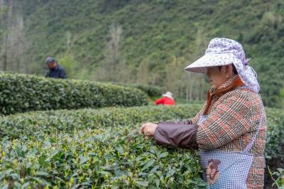 2026年3月26日,春天里的恩施市沐抚办事处堰塘村群山苍翠、茶园绿润,清江在山谷里奔流、涌淌,梨花、油菜花盛开在田间,茶农在山间忙碌采摘春茶,好一幅热闹的春景图。 据堰塘村村民谭全翠说,她家有恩施玉露茶园近8亩,靠采茶年收入可达6万余元。