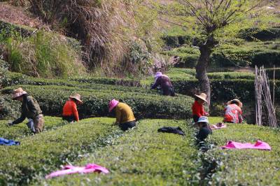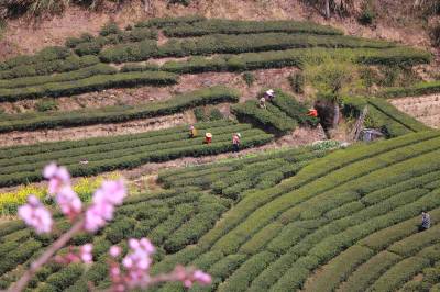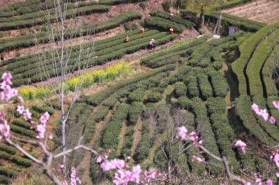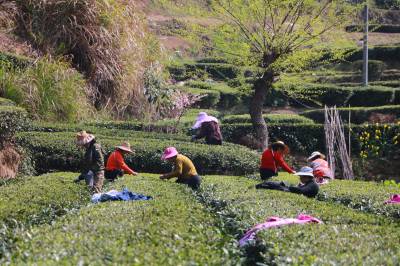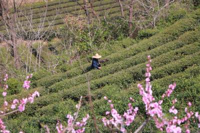 2026年3月28日,阳春三月,春暖花开。湖北省英山县南河镇付家坊村数百亩茶园边桃花盛开,风景优美。村民三五成群,有说有笑地在茶园里喜采明前茶嫩芽供应市场。 村民穿梭在葱郁的茶垄间,指尖翻飞中,一片片承载着丰收希望的“金叶子”被收入篓里。小小一片春茶已然成为当地群众稳定增收、助推乡村振兴的“黄金芽”。