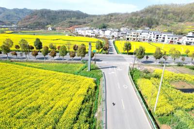 2026年3月28日,随着气温回暖,湖北省十堰市竹山县麻家渡镇营盘河村连片的油菜花田竞相绽放,宛如一片片金色的海洋,与远处的山峦、村落和谷竹高速公路相互映衬,勾勒出一幅如诗如画的和美乡村新画卷,众多游客慕名而来乐享春天的美丽,在花丛中拍照打卡。