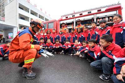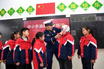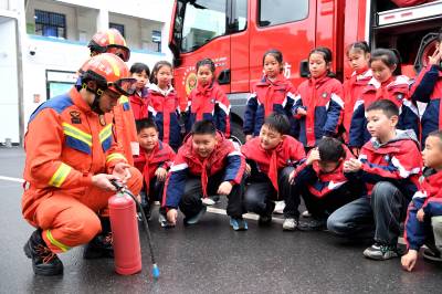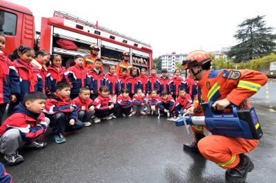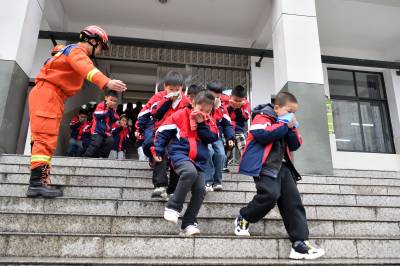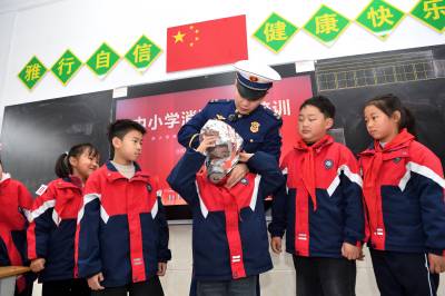3月30日是第31个全国中小学生安全教育日。保康县消防救援大队到保康县实验小学开展消防安全教育进校园活动,学生们在消防员的指导下,体验使用消防器材,参加火灾应急逃生演练,着力提高学生消防安全防范意识,增强学生自我防护能力,保障学生健康成长。(视界网杨韬 邢忆星 摄)