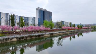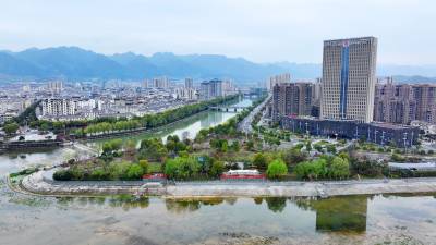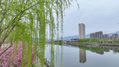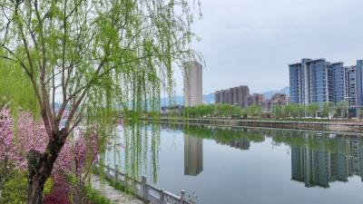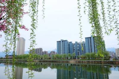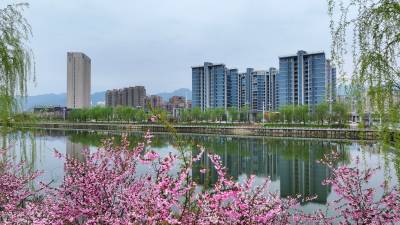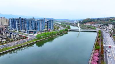 2026年3月30日,十堰市房县县城中心安居工程区,过境城区腹地的马栏河、大河等两条省级“幸福河湖”水清岸绿,花香四溢,为当地广大群众安居营造了优良的生态居住环境。