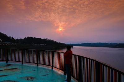2026年3月31日,在湖北省英山县方家咀乡四棵枫村枫花渡口,雨过天晴,夕阳西下,白莲河上游水乡霞光万丈,春山春水间,霞光映春,呈现出旖旎多姿的别样黄昏美景,如同大自然为世界描绘的一幅绚丽画卷,柔美而震撼,给人们带来了无尽的想象和美好,吸引市民前来拍照打卡。