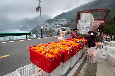 2026年3月27日,三峡库区湖北省宜昌市秭归县郭家坝镇头道河村,村民采摘春橙“伦晚”,装箱、上车,销往外地。地处三峡库区的湖北省宜昌市秭归县,凭借独特的峡江气候大力发展脐橙产业,形成“四季有鲜橙”的产业格局,并使“秭归脐橙”成为国家农产品地理标志产品。
