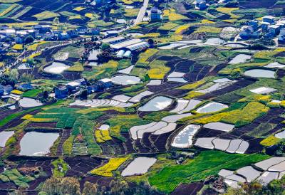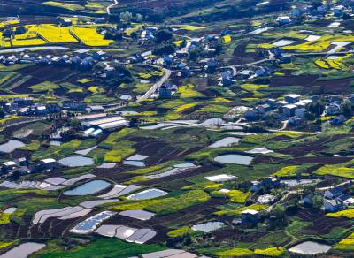 4月1日,竹山县宝丰镇深沟村半山坡上百口山塘蓄满水备春耕,宛如一幅动人的山水画。该县在对山水林田湖草统一规划时,依据土壤结构、年平均降水量等自然因素,科学配置堰道库塘分布,方便村民生产生活用水。