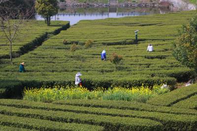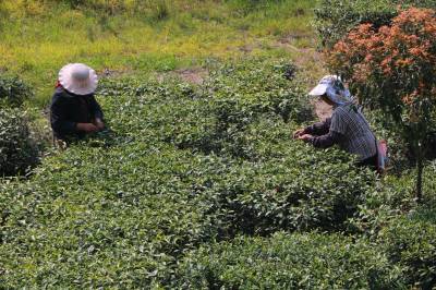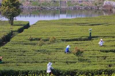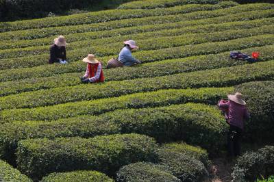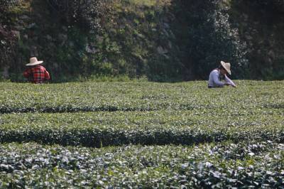 2026年4月1日,湖北省英山县农场管理中心长冲茶场大批茶农抢在清明节前,手工采摘春茶供应市场。