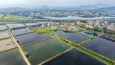 2026年4月1日,湖北省黄冈市浠水县清泉镇东山村,连片标准化水产养殖塘如棋盘铺展,澄澈水面映照着春日远山与村居,一派生机盎然的产业兴旺图景。近年来,浠水县立足水资源禀赋,大力发展特色水产养殖、鱼苗培育等富民产业,通过标准化塘口改造、生态养殖技术推广、产业链延伸升级,推动水产产业规模化、品牌化发展,让 “一池春水” 变成带动村民增收、助力乡村振兴的 “致富活水”,为农业强、农村美、农民富的和美乡村建设注入强劲动能。