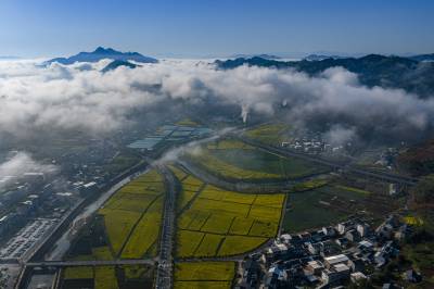 4月1日,竹山县营盘河村云雾缭绕,金黄的油菜花田铺展其间,346国道与襄天高速纵横交错,在村域交汇,犹如两条动脉,构建起内通外联的立体交通骨架。优越的区位优势正转化为乡村振兴的强劲动能:当地蔬菜种植面积达5200余亩,年产值突破1.3亿元,带动320多户村民户均年增收3.8万元。畅通的路网让“菜园子”无缝对接“菜篮子”,吸引5家农业企业落户,推动产业配套升级。交通红利持续释放,为“交通+产业+民生”的乡村振兴模式写下了生动注脚。(视界网 章磊 摄)